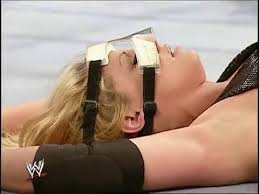 Torrie and Paige head to the ring. Smiles and all. Torrie enters the ring with the once mighty Trish Stratus now on the ground defeated. Paige heads to the announce table to get a view of what Torrie has in store. She wants to also give play-by-play of the upcoming assault.