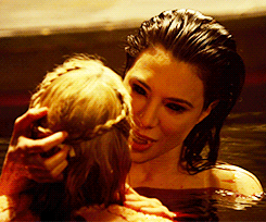 Ariel crawls towards Trish. Trish doesn’t know where she is. But she feels another woman suddenly saddle her. This woman that’s saddling her is sitting on Trish’s lap as Trish gets a view of who’s on top of her. She realizes it’s Ariel!!