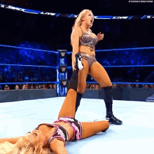 Nikki realizes Kelly’s not letting go and reaches as far as she can while in the figure four and delivers a fist punch to Kelly’s lip. Causing Kelly to release the hold and snap down to the floor. Kelly begins crawling away from Nikki as Nikki survey’s the damage done to her legs.