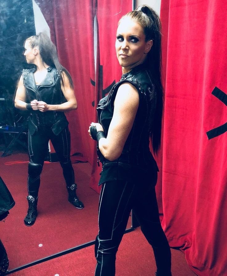 Angela sets up a steel chair in the ring and sits in it waiting. “Whatever I have to do, I’ll do just give me ‘Carrie in a CELL.’” Angela quips.