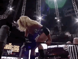 The ref proceeds to help Trish out of the ring, as she raises her title in victory. She’s unable to even carry herself out of the ring from the Rack Attack.