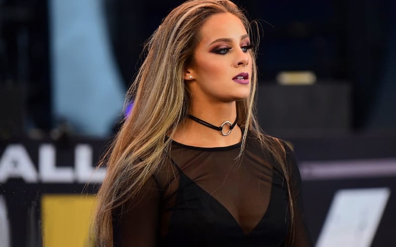 Anna Jay is unexpectedly ambushed from behind. Melina grabs her by the back of her head and performs her finishing maneuver on Anna Jay. She crashes Anna Jay into the metal walkway.