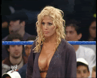 The women rush each other. Alexa launches into mid-air and drop kicks Torrie square in the chest. Torrie goes down coughing from the impact. As she struggles to get to one knee, Alexa Jams her knee into the side of the Beautiful bombshell’s ear.