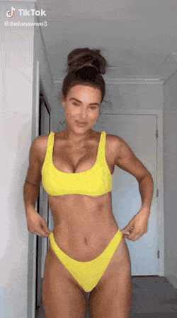 Still laying down, she tilts her head slightly to the side to see the little ‘Trish wannabe’ lowering her knee pads to expose her boney knee. It’s like a first-person view of Torrie watching Alexa make every move. Torrie’s head is spinning as the smaller blond approaches her head. She looks up and sees the small blonde rise into the air above her. She’s jumping into the air right above Torrie’s head. Alexa only has one way to go from this point.