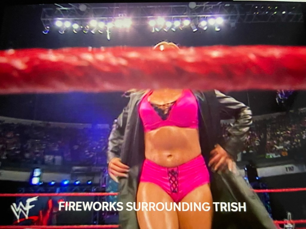 And if Trish loses she’s going to want to be off television for awhile. Because Ashley Graham is going to have her way with the loser lol.