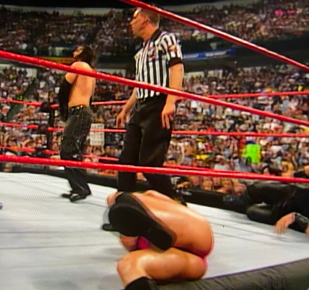 Oh! I almost forgot you were there. Back in the ring I’ll go then. A count out win would work for me too.