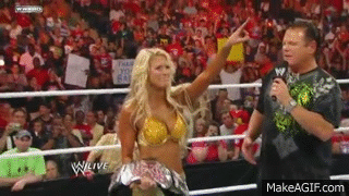 JR: “King, as we draw closer to end of the show Id like to wish the viewers a Happy Thanksgiving! King “Let’s let Trish and the Bellas take it from here!” The three competitors are in the ring. Trish hasn’t taken her eyes off of her challengers. Nikki and Bri are giggling at the situation. …