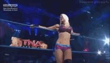 JR “This doest’t happen all too often but all three women have come out for this next match to the same theme music.” King: “Thats not unusual!” JR: “It is when they’re opponents, King.” Lacey sits on a steel chair by the time keeper awaiting for the match to begin. Velvet and Angelina are in …